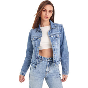 custom ladies blue jeans jacket fashion casual women's Lapel heavy industry diamond sexy hollow out denim jackets women