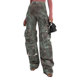 Custom women camouflage cargo pants multiple pockets fashion Army Green high waist wide leg pants