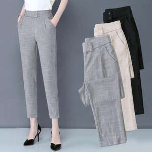 cotton and linen fashion suit pants women's large size high waist loose small feet elastic harem casual pants women