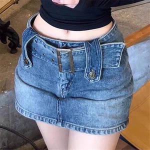 High Waist Denim Jeans Skirts belt Summer Skirts Women Mini Short Skirts
