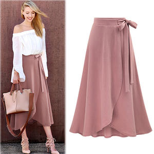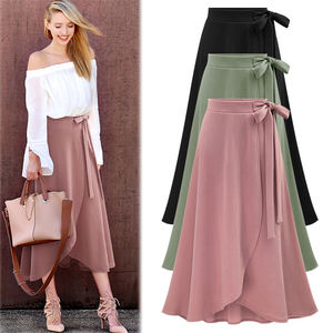 JBeiL M-6xl Womens Slit Long Skirts Plus Size Ladies Jupe High Waist Bowtie Summer Slim Casual Asymmetric Skirt Saia Casual