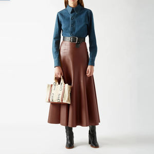 Jupe Cuir Femme Ome/odm Saia Skirts Elegant Women Long A-line Mid-length faldas Ladies Pleats Leather Pu Casual Skirt