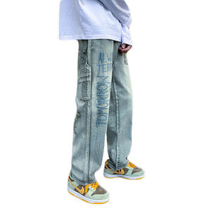 Men's Jeans Wholesale Price High Quality Men's Jeans Straight Tube Loose Wide Leg Pants Embroidery Design Goods Stock Men's Pants