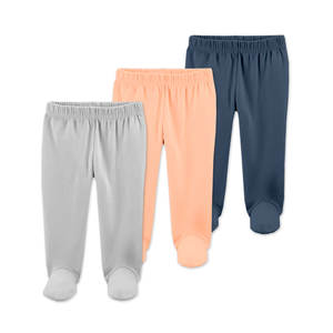 Custom Organic Cotton Toddler Baby Clothing Unisex Knit Pants Plain Solid Color Baby Pants