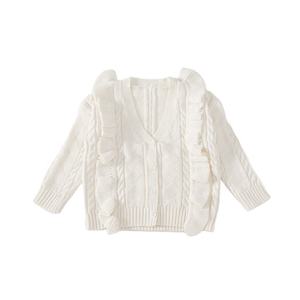 Children Kids Sweater Supplier Autumn Baby Girls Custom Twist V Neck Long Sleeve Button Up Cardigan Cable Knitted Baby Sweater