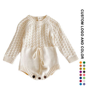 Baby Jumpsuit 2023 Wholesale Winter Chunky Newborn boys' Girls' Designs 100% Organic Cotton Knitted Jumper Romper Baby Sweaters