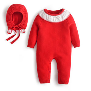 Baby Girl One Piece Sweaters Newborn Red Knitted Rompers with Hats Blanket Infant Knitwear Cotton Knit Jumpsuit In stock