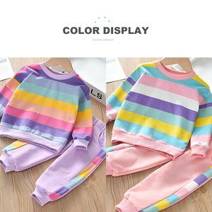 Girls Clothing Back To School 10Yrs Girls 2 Pieces Sets Daily Wear Child Clothing For Autumn Striped Colorful Rainbow