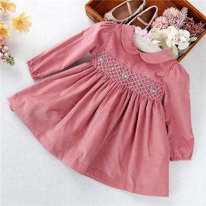Girls Baby Girl Smocked Dresses C20729 Winter Corduroy Little Baby Dresses For Girls Smocked Hand Made Blue Pink Outfit Kids Children Clothes Wholesale Bishop