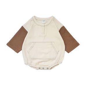 Baby color block kangaroo pocket bubble romper french terry long sleeve playsuit