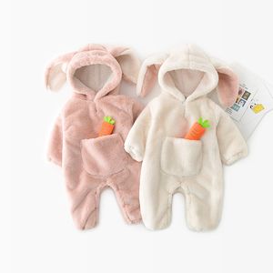 Baby kids Girls Roupas thick warm Velvet Winter Boys Rompers Rabbit Ear Hooded Infants Playsuit Carrot Overalls Jumpsuits