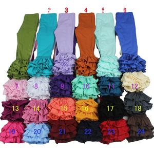 Boutique baby leggings girls triple ruffle pants kids bell bottom wholesale baby pants fluffy