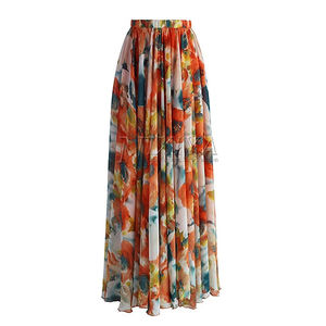 Elegant ladies Summer Skirt Hot Sale New fashion Skirt floral print Shrink long women skirts maxi