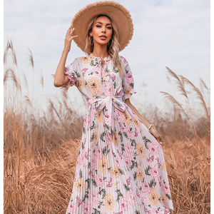 Boutique Wholesale 2022 Summer Sweet and Salty Dress High Texture Satin Pleated Inner Comfortable Casual Dresses
