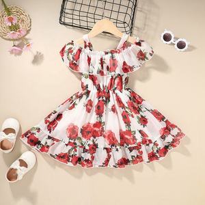 Elegant Soft Casual Rose Print Longuette Twirl Plete Dresses for Girls