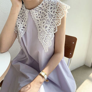 Boutique Wholesale 2022 Korean Chic Summer Niche Retro Hollow Lace Lapel Loose Long Knee-length Sleeveless Dress