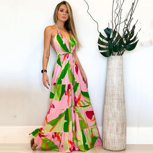 Deep V Backless Floral Longuette Bohemian Women's Dresses