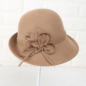 Fashion 100% Wool Cloche Round Bucket Church Hat Lady Women Daily Life Plain Dyed Custom Logo