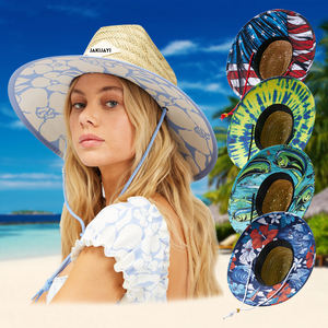 Custom patch logo oversized sombrero men surf beach hat women summer beach ladies dye brown natural grass lifeguard straw hat