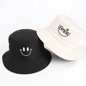Fisherman Hat Lady Smiling Face Embroidery Double-Sided Smile Bucket Hat Outdoor Unisex Sunshade Hat