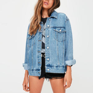 Dongguan factory fall clothing custom long denim distressed women jean jacket cotton blue winter plain denim jacket for women