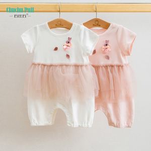 High Quality 100 Cotton Jacquard White Summer Lace Baby Girls Romper Dresses