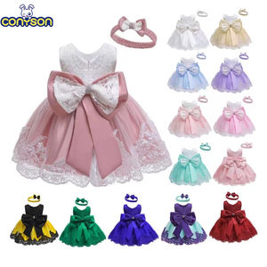 Manufacture Directly Good Price Multi Colors Little Baby Girls' Princess Dress With Hairband For Birthday Party Wedding