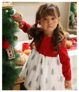 Hot selling holiday girls dresses red and green prints Christmas tree baby clothes