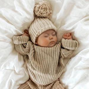Factory Custom Winter 100% Cotton Chunky Warm Toddler Unisex Baby Crewneck Knit Baby Sweater