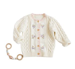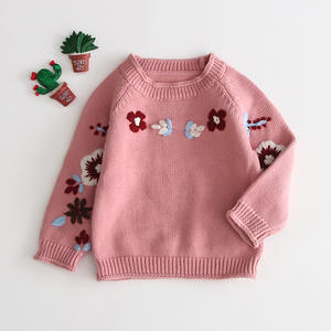 Factory Custom Wholesale baby sweater cotton hand made embroidery flower baby girl sweaters