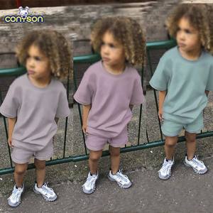 conyson wholesale two piece kids jogger clothes set cotton short sleeve custom boys clothing sets summer kids sweatsuits