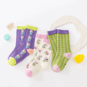 Fashion autumn children socks floral design baby toddler calf socks knee socks for girls