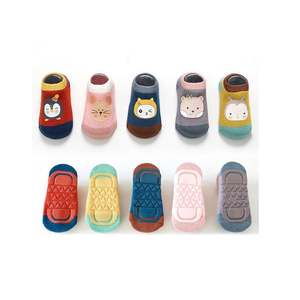 Custom logo anti slip walking cotton girl boy infant toddler socks cute newborn grip children kids socks knit custom baby socks