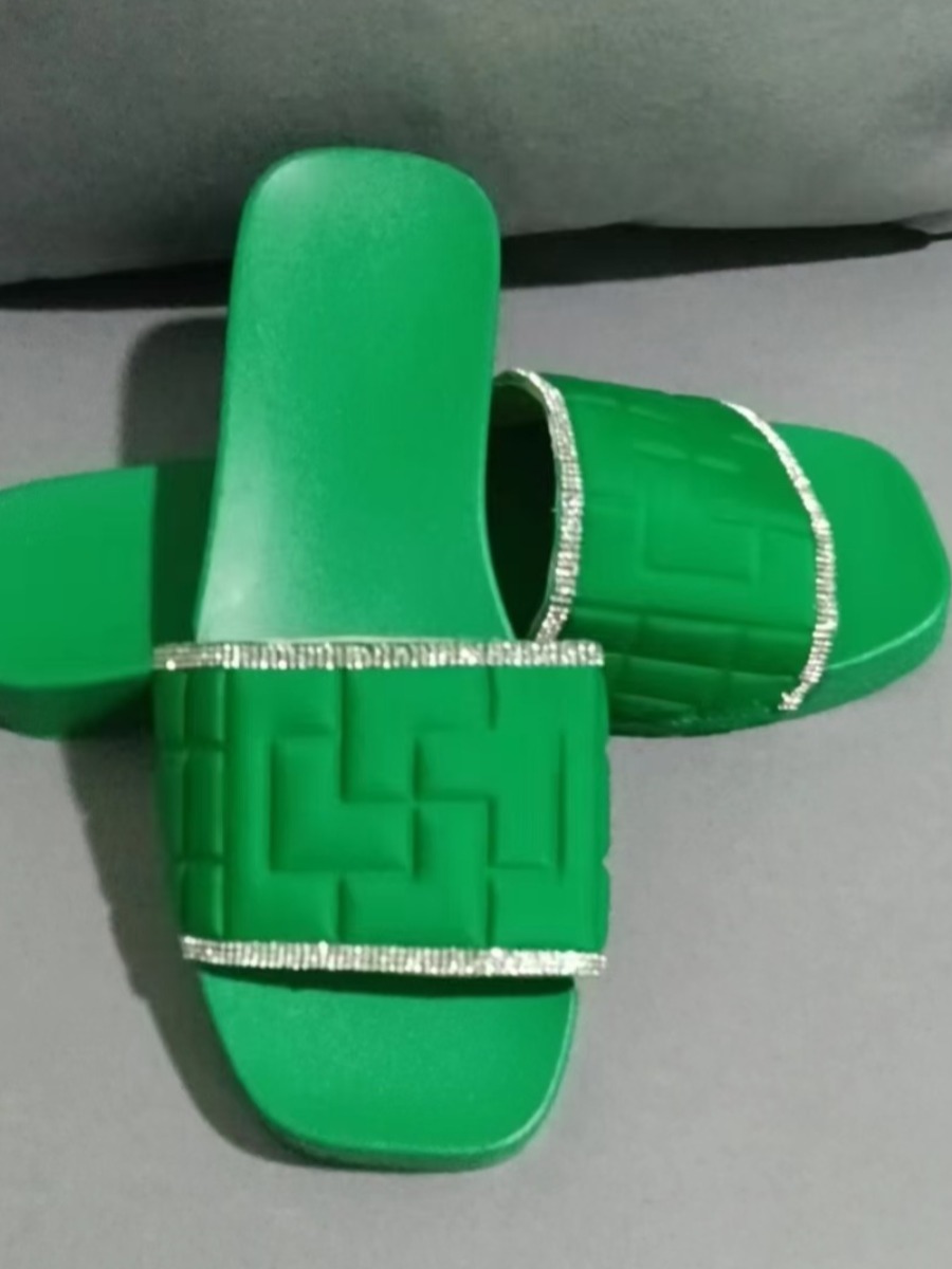 LW Rhinestone Decor Platform Slides