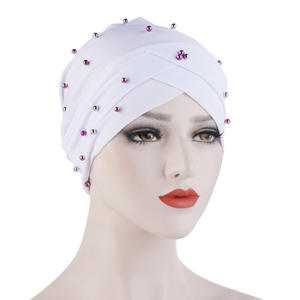Hat TB-518 African Women Headwrap Crystal Linen Forehead Cross Beanies Turbans Hat Arab Muslim Female Beaded Hair Turban Head Wrap
