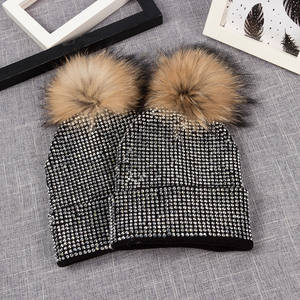 h100 knitted hat lady winter fur pom pom beanie hats rhinestones hats