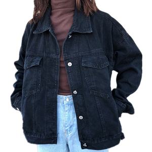 Spring Japanese design women's black denim jacket loose fashion lady's long-sleeve solid color style denim jacket