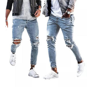 Wholesale low price fashion high quality ripped skinny men's skinny stretch jeans trousers