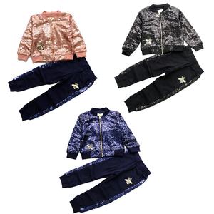 Wholesale Factory Casual Teenage Girl Clothes Fashion Sequin Embroidery Girls' Clothing Sets 2 Piece Sport Set