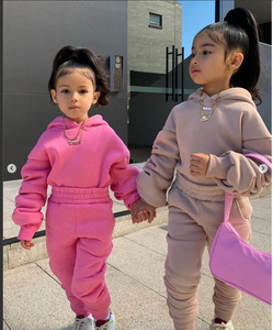 Unisex Children Custom Thick Kids Fall Girl Clothing Autumn Stacked long Sleeves Girl Boutique Clothing Sets Hoodie