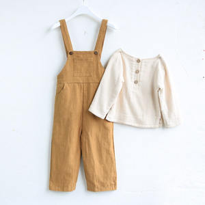 Fashion Hot Sell High Quality Linen Cotton Kids Overalls Summer Solid Color Baby Suspender Trousers