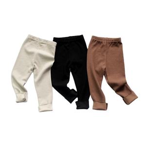 G108082 Pants for kids Casual Harems Trousers Bottoming Pant Ribbed Elastic Solid Color Girls Clothing For Baby Boys leggins