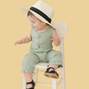 Newborn Baby Basic Rompers Sleeveless Linen Tank Rompers Playsuit Homewear Custom Loungewear One Piece Set Jumpsuit Toddlers