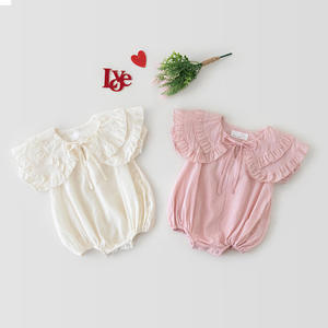 Organic Cotton Soft Baby Girl Clothes Summer New Ruffle Romper Jumpsuit Pink Baby Playsuit