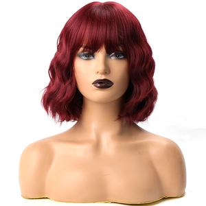 Short Wavy Wig with Bangs Red Synthetic Wigs For Women Natural Brown Mixed Black Hair Bob Wigs Heat Resistant Fiber