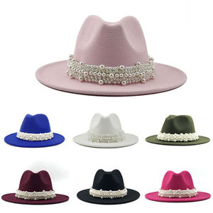 New Elegant Lady Winter Wide Brim Hat Women Wool Fedora Felt Hat With Pearl