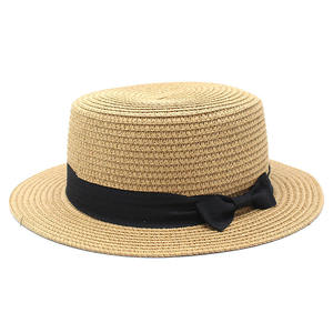 Straw hat sunshade hat lady summer bow Straw Beach flat hat for women