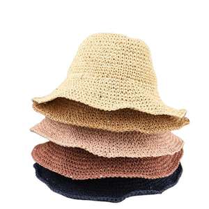OEM Customized Women Beach Bucket Hat Summer Sun Hat Lady Foldable Paper Straw Hat