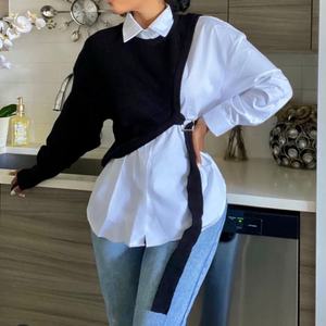 New Fashion Best Selling Women Fall Spring White Blouse Tops Patchwork Sweater Plus Size Women'S Blouses & Shirts