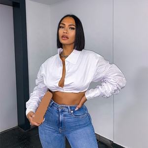 latest long stacked sleeve crop tops white color shirt women fashion design lady blouse 2022